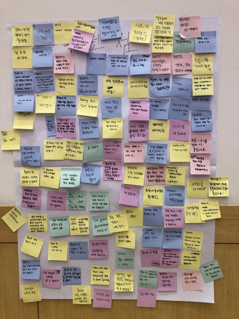 인원이 많았기 때문에 전날인 토요일 오후에 2시간정도 테이블 퍼실리테이터로 수고해주실 21명의 리더들과 먼저 만났었습니다. 테이블 퍼실리테이터로 수고해 주신 분들이 계셔서 좀더 수월하게 진행할 수 있었던것 같습니다.