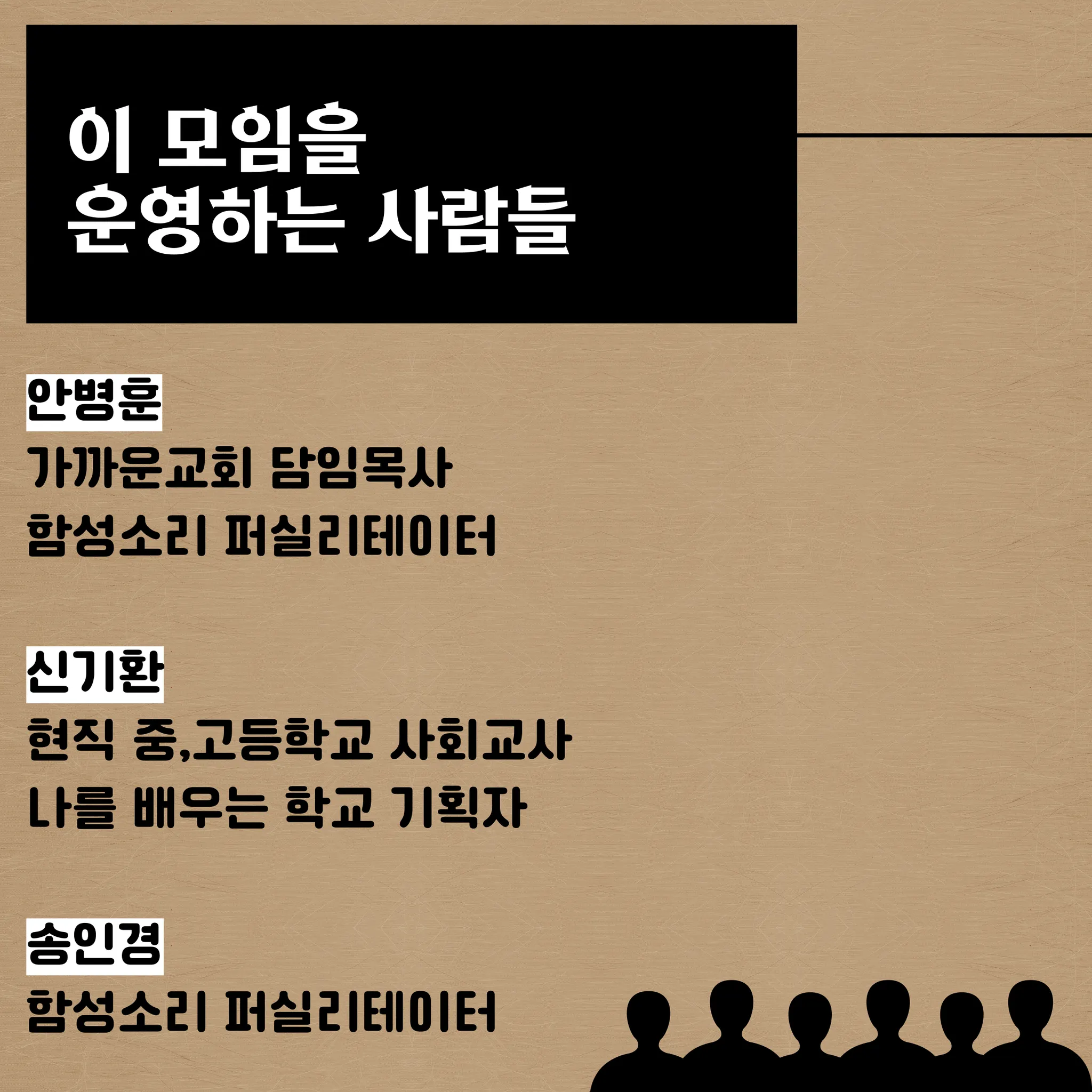 "퍼실리테이션을 하는 목사"로 저를 소개하고 있는데요. 10년전 청소년들과 진지한 대화가 가능할지에 대한 질문으로 여러시도들을 해왔습니다. 작은 성취를 통해 가능성을 보았고 그 중심에 "교사들"이 있다는 것을 깨달았습니다.